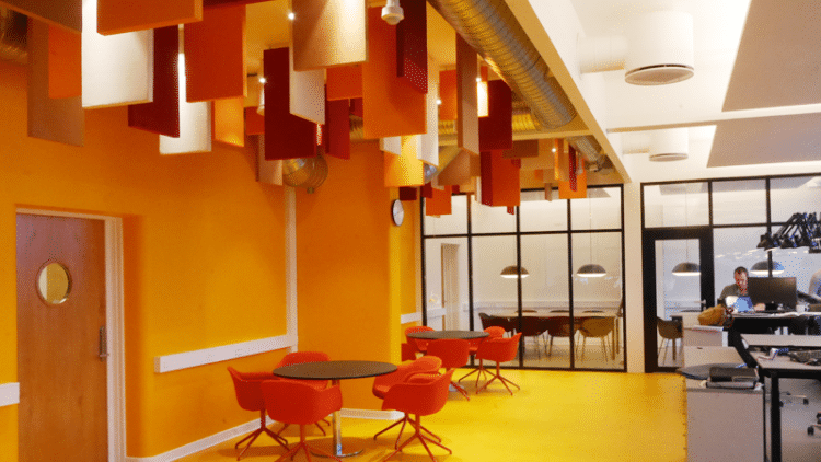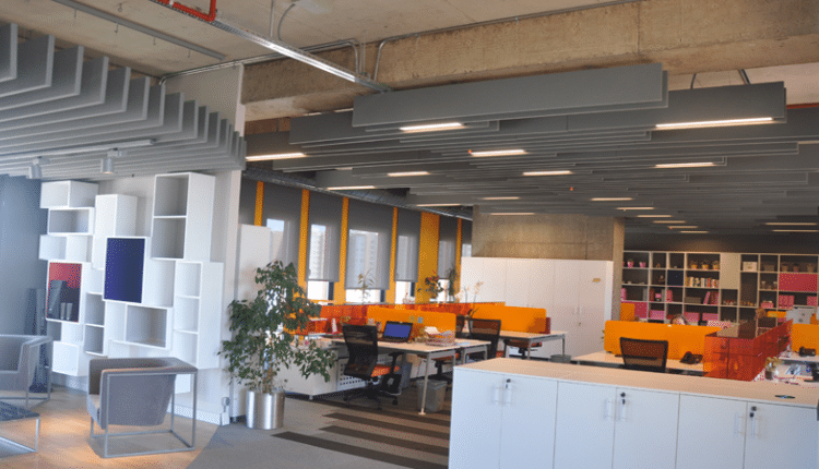 Tavana monte edilen ve çift tarafı odaya maruz kalan akustik baffle, yankılanmayı ve gürültüyü azaltmada kullanılan akustik panel çeşididir.